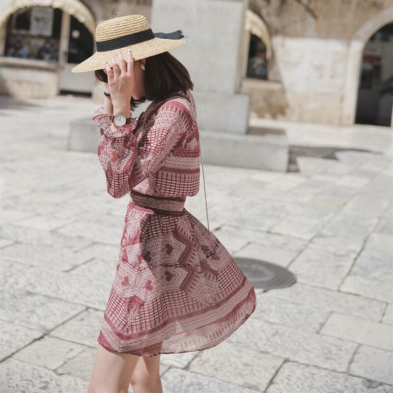 ≡ ≡ 新品 プリント柄ボヘミアンきれいめ☆ドレス ワンピース ≡ オフィスファッション 通勤 通学 韓国系 ガーリー パーティー 食事会 海 リゾート 同窓会 記念日 旅行 お呼ばれ デート フェミニン AA19096488