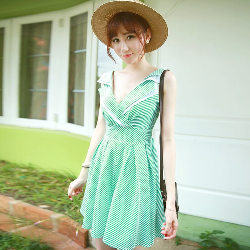 ≡ ≡ 新品 Vネックスタンダードグリーンストライプスカート パンツ レトロ ≡ オフィスファッション 通勤 通学 韓国系 ガーリー パーティー 食事会 海 リゾート 同窓会 記念日 旅行 お呼ばれ デート フェミニン AA13696135