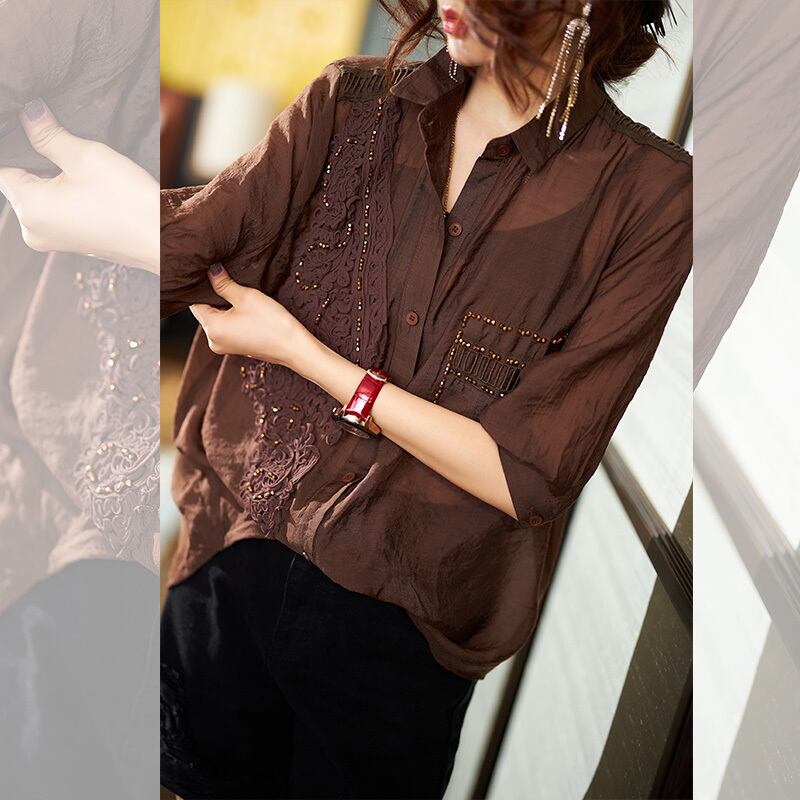 ≡ ≡ 新品 レースシャツブラウススタンダードトップス レトロ ヨーロピアン ステッチ ≡ オフィスファッション 通勤 通学 韓国系 ガーリー パーティー 食事会 海 リゾート 同窓会 記念日 旅行 お呼ばれ デート フェミニン AA29798714
