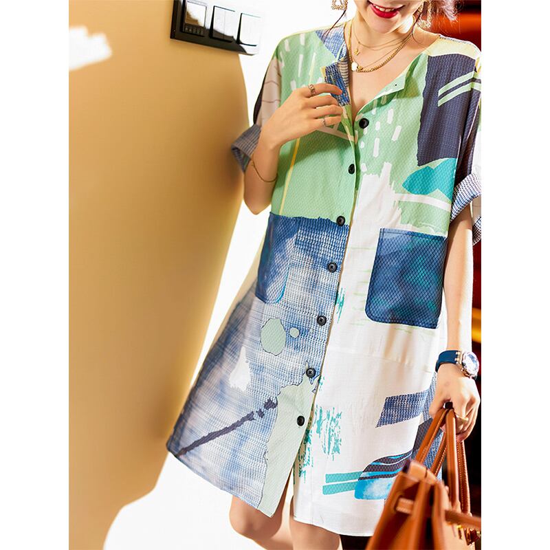 ≡ ≡ 新品 プリント柄シャツブラウススカート ♥カワイイ♥ロング ヨーロピアン ≡ オフィスファッション 通勤 通学 韓国系 ガーリー パーティー 食事会 海 リゾート 同窓会 記念日 旅行 お呼ばれ デート フェミニン AA21440247