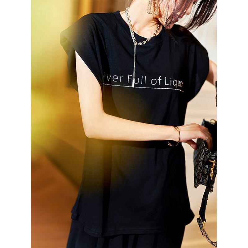 ≡ ≡ 新品 ラインストーンブラックTシャツ トップス ヨーロピアン ≡ オフィスファッション 通勤 通学 韓国系 ガーリー パーティー 食事会 海 リゾート 同窓会 記念日 旅行 お呼ばれ デート フェミニン AA24680115