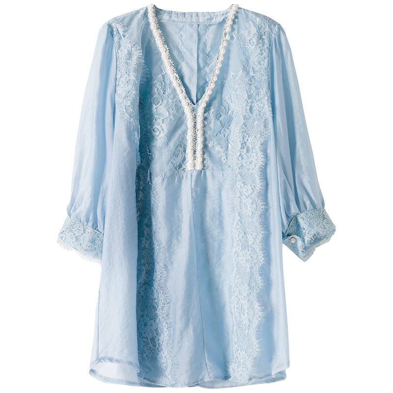 ≡ ≡ 新品 レーストップス シャツブラウスVネック ヨーロピアン ステッチ ≡ オフィスファッション 通勤 通学 韓国系 ガーリー パーティー 食事会 海 リゾート 同窓会 記念日 旅行 お呼ばれ デート フェミニン AA28147845