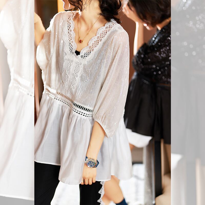 ≡ ≡ 新品 VネックシャツブラウスTシャツ ♡ 大きめサイズ ヨーロピアン ≡ オフィスファッション 通勤 通学 韓国系 ガーリー パーティー 食事会 海 リゾート 同窓会 記念日 旅行 お呼ばれ デート フェミニン AA29513356