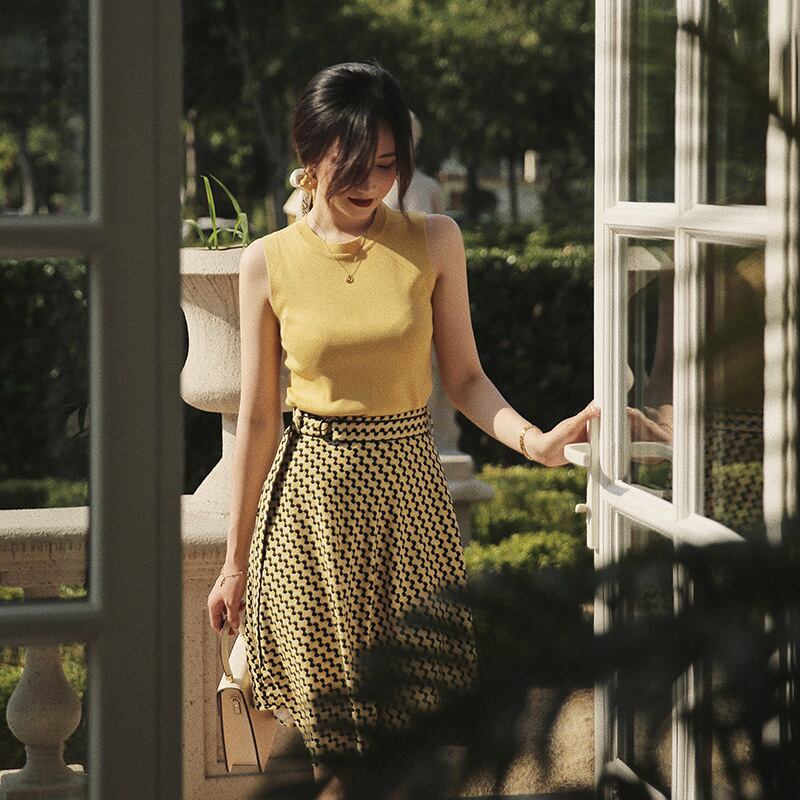 ≡ ≡ 新品 イエローニットラウンドネックワンピースノースリーブトップス スウィート ≡ オフィスファッション 通勤 通学 韓国系 ガーリー パーティー 食事会 海 リゾート 同窓会 記念日 旅行 お呼ばれ デート フェミニン AA18630540