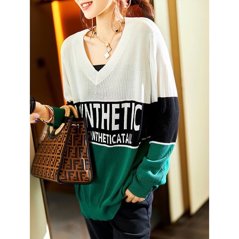 ≡ ≡ 新品 プリントセーター Vネック長袖スリーブトップス ロング ヨーロピアン ≡ オフィスファッション 通勤 通学 韓国系 ガーリー パーティー 食事会 海 リゾート 同窓会 記念日 旅行 お呼ばれ デート フェミニン AA283914364901