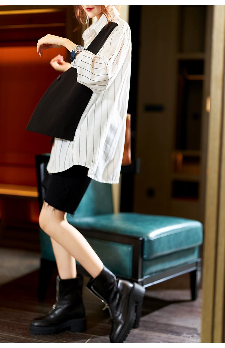 ≡ ≡ 新品 ストライプシャツブラウス ロング ヨーロピアン ≡ オフィスファッション 通勤 通学 韓国系 ガーリー パーティー 食事会 海 リゾート 同窓会 記念日 旅行 お呼ばれ デート フェミニン AA235124754715