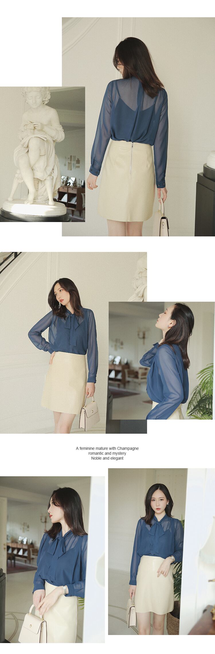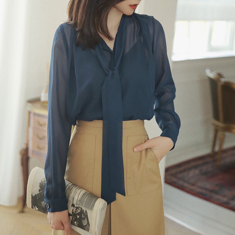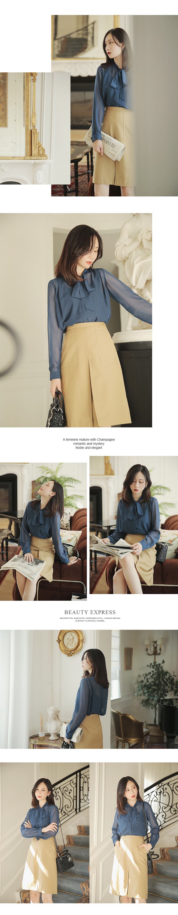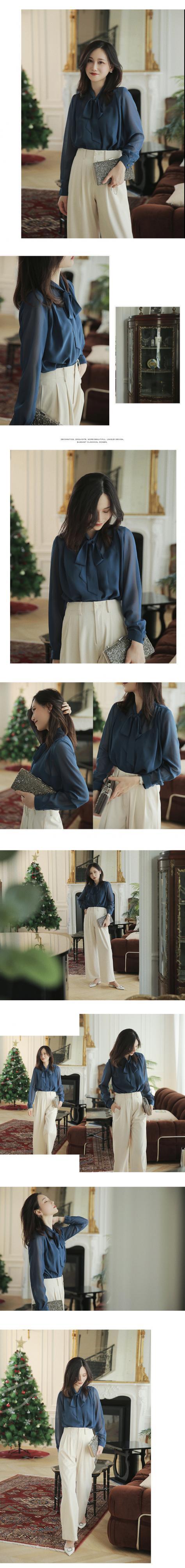 ≡ ≡ 新品 リボン♥カワイイ♥白ネイビーブルーシャツブラウス ロング ホワイト エレガント ≡ オフィスファッション 通勤 通学 韓国系 ガーリー パーティー 食事会 海 リゾート 同窓会 記念日 旅行 お呼ばれ デート フェミニン AA122565857350