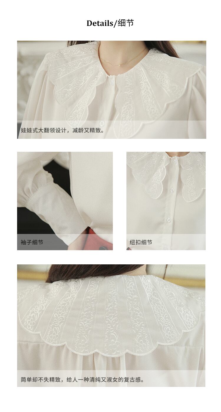 ≡ スタンダードウィンター白シャツブラウス刺繍長袖スリーブ大人女子☆ ロング ホワイト レトロ エレガント 冬物 ≡ オフィスファッション 通勤 通学 韓国系 ガーリー パーティー 食事会 海 リゾート 同窓会 記念日 旅行 お呼ばれ デート フェミニン AA179213550231