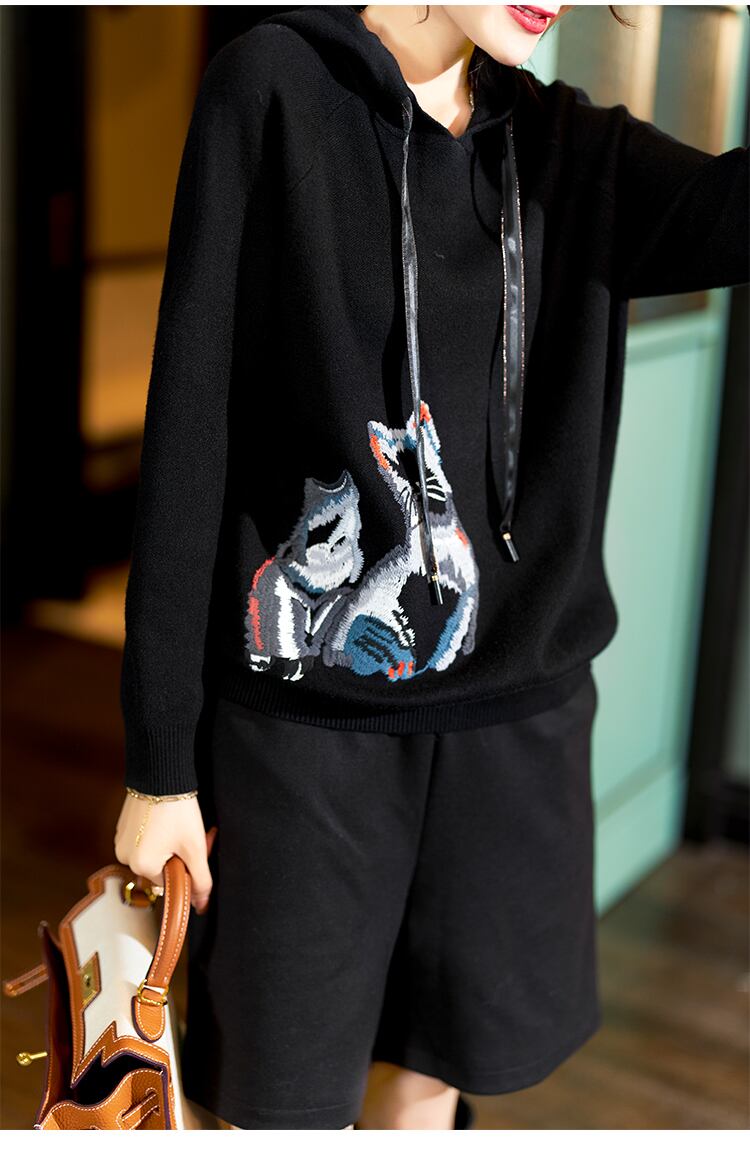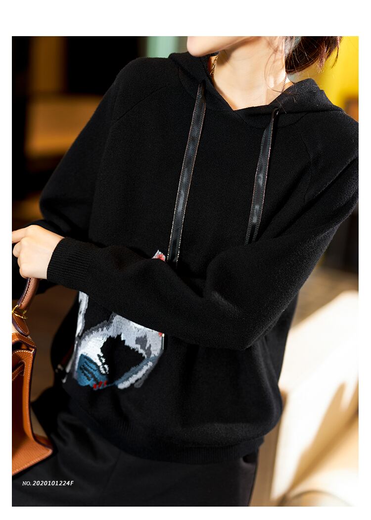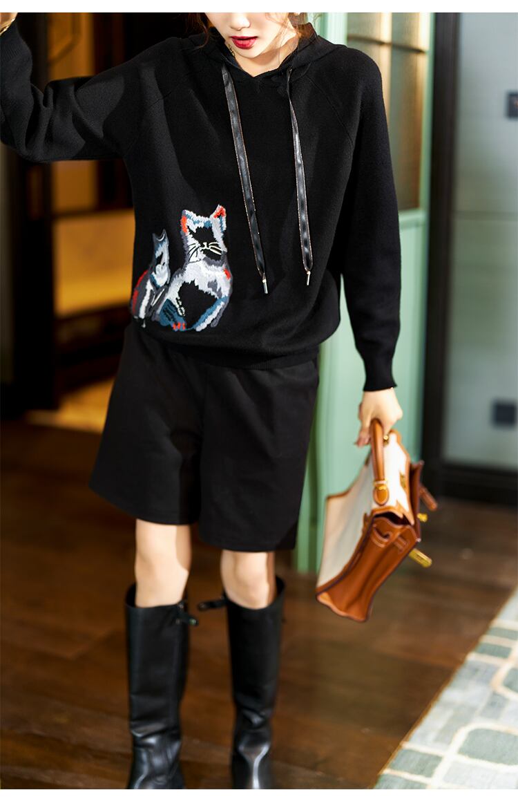 ≡ 刺繍フードセーター ブラックトップス ヨーロピアン ≡ オフィスファッション 通勤 通学 韓国系 ガーリー パーティー 食事会 海 リゾート 同窓会 記念日 旅行 お呼ばれ デート フェミニン AA288704011553