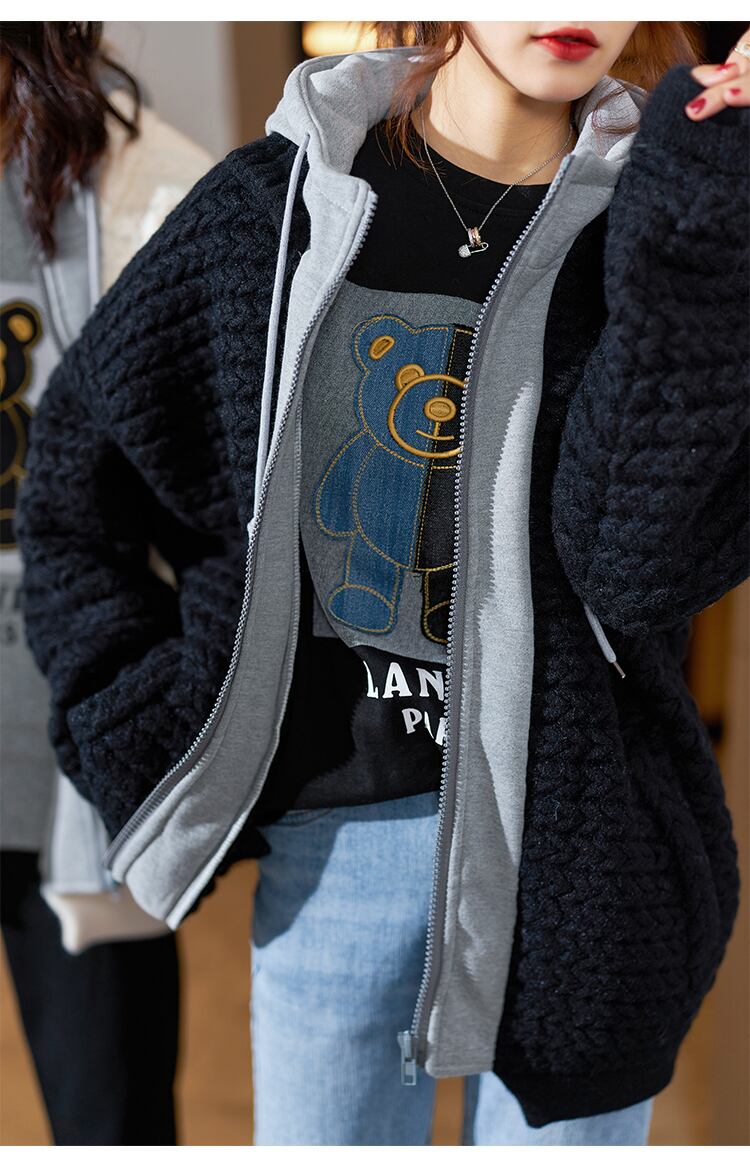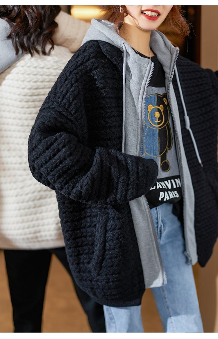 ≡ ブラックフードジャケット レディーススプリングニットトップス 春物 ヨーロピアン ステッチ ≡ アイドル ジャケット ブルゾン Tシャツ 長袖 半袖 デニム ジーンズ スーツ ZARA フォーエバー21 GAP H&M WEGO HONEYS MUJI GU UNIQLO dholic babyGAP FOREVER21 Old Navy 春夏秋冬 韓国 K-POP Kpop 韓流 スター AA294840189085