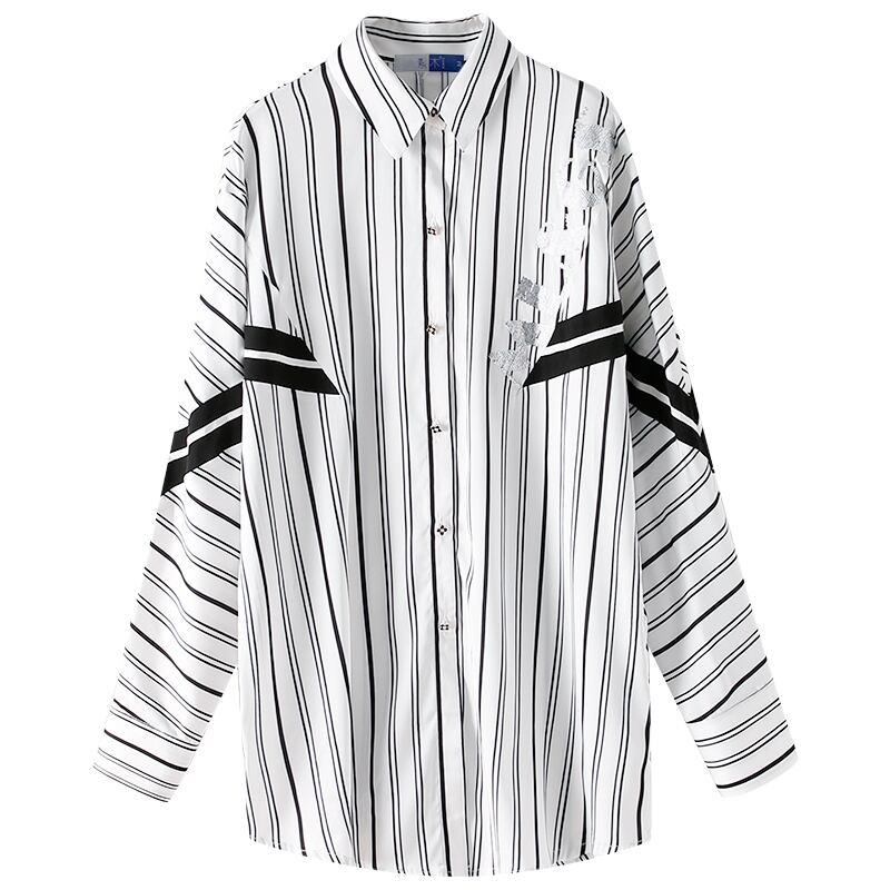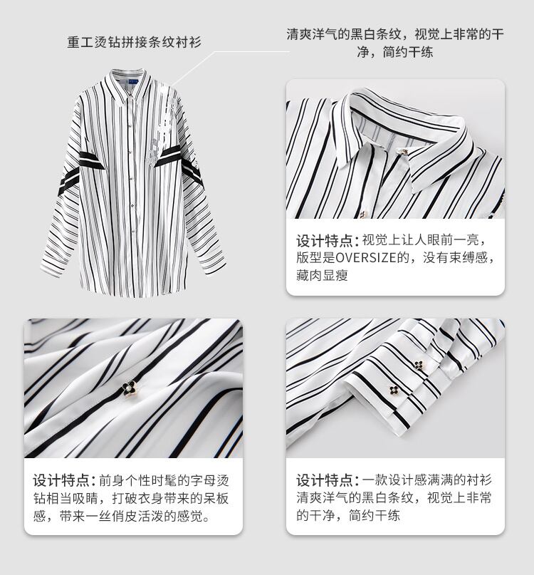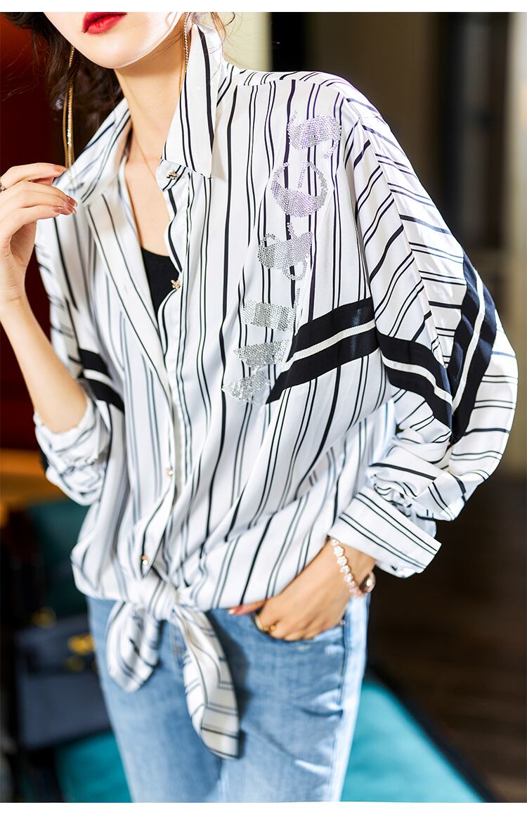 ≡ ラインストーンストライプシャツ スタイルロング長袖スリーブシフォンジャケット ヨーロピアン ≡ アイドル ジャケット ブルゾン Tシャツ 長袖 半袖 デニム ジーンズ スーツ ZARA フォーエバー21 GAP H&M WEGO HONEYS MUJI GU UNIQLO dholic babyGAP FOREVER21 Old Navy 春夏秋冬 韓国 K-POP Kpop 韓流 スター AA222673394449