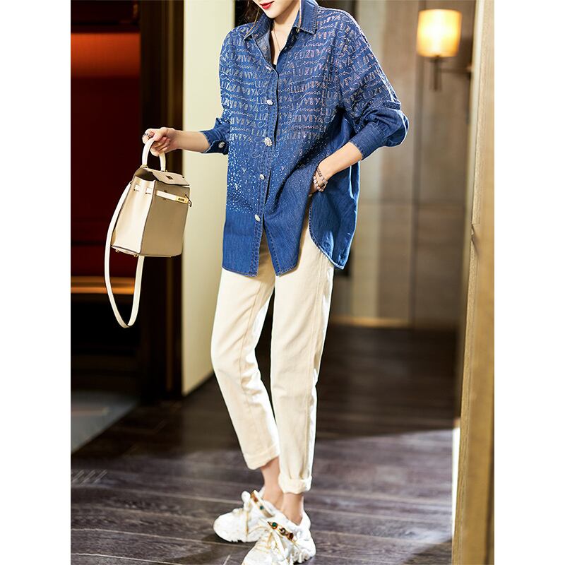 ≡ ラインストーンブルーシャツ スプリングルーズスリムトップス ロング 春物 ヨーロピアン ≡ アイドル ジャケット ブルゾン Tシャツ 長袖 半袖 デニム ジーンズ スーツ ZARA フォーエバー21 GAP H&M WEGO HONEYS MUJI GU UNIQLO dholic babyGAP FOREVER21 Old Navy 春夏秋冬 韓国 K-POP Kpop 韓流 スター AA299395810818