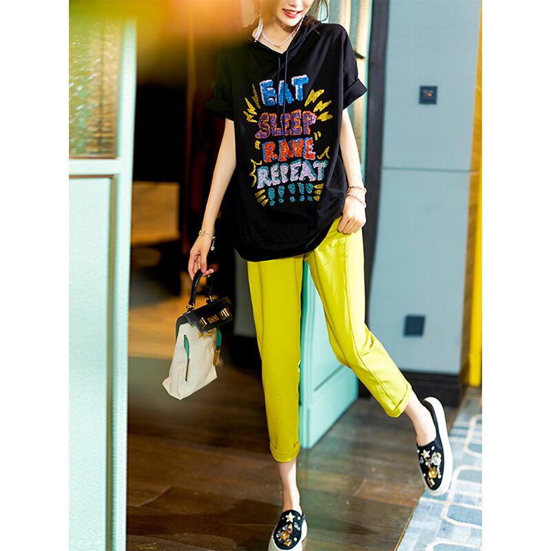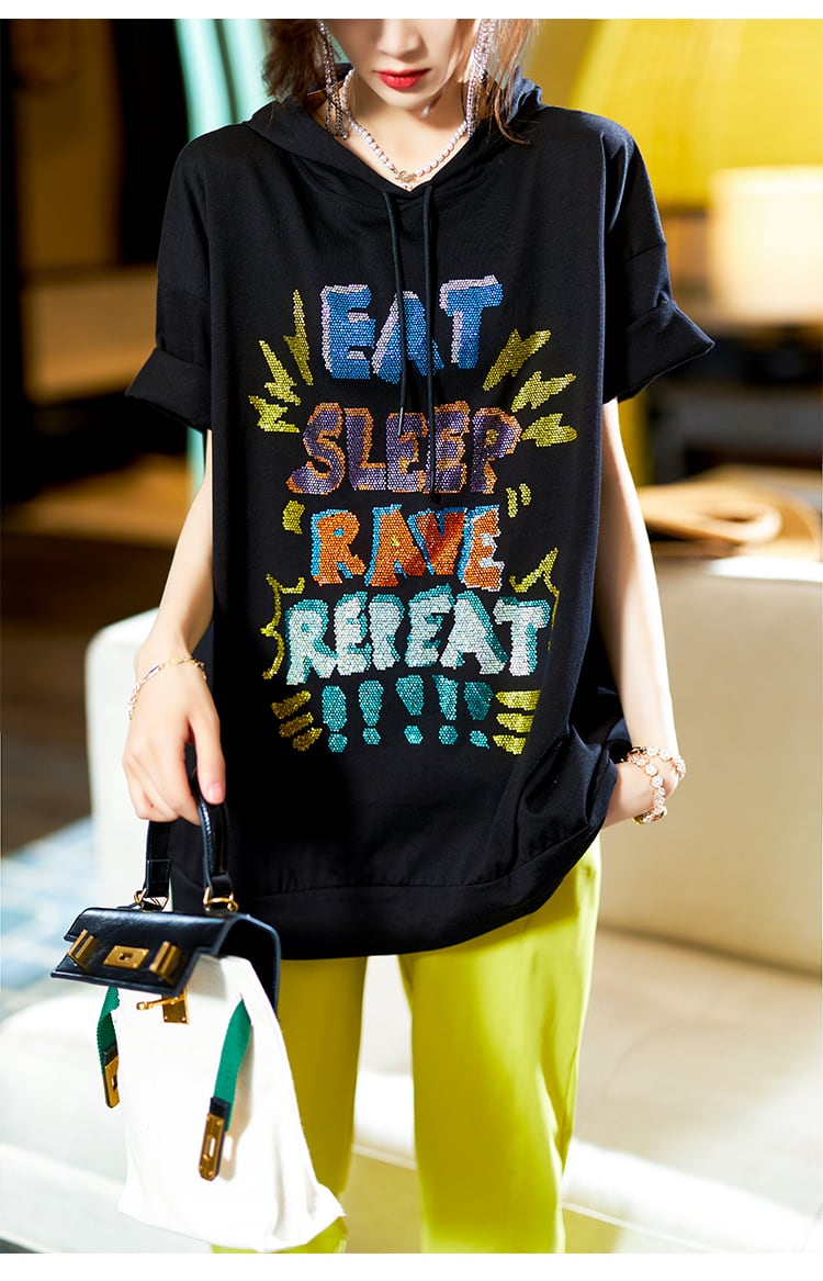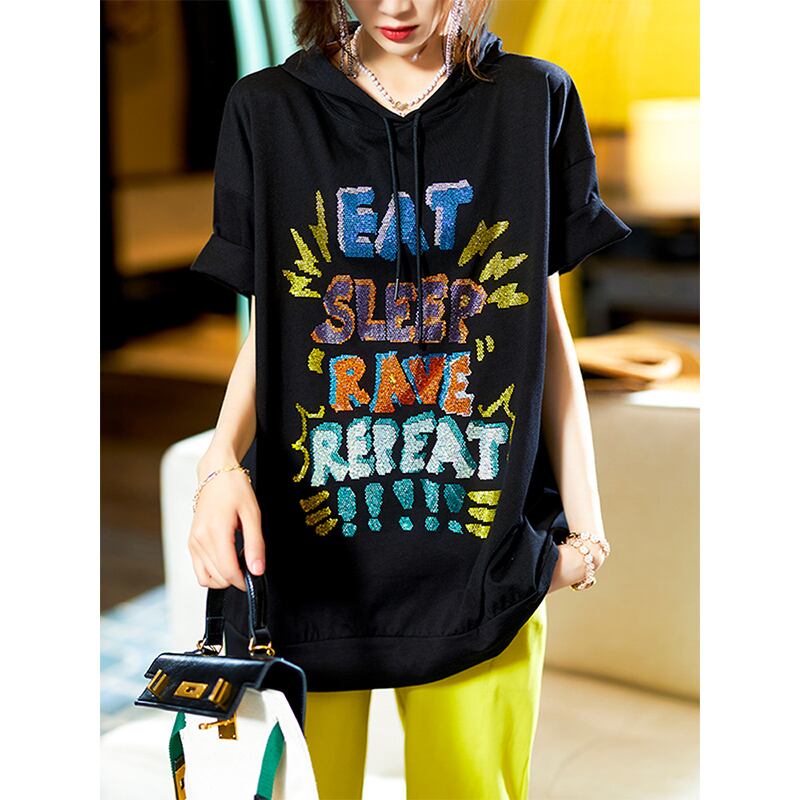≡ フードラインストーンブラックTシャツ サマートップス 大きめサイズ 夏物 ヨーロピアン ≡ アイドル ジャケット ブルゾン Tシャツ 長袖 半袖 デニム ジーンズ スーツ ZARA フォーエバー21 GAP H&M WEGO HONEYS MUJI GU UNIQLO dholic babyGAP FOREVER21 Old Navy 春夏秋冬 韓国 K-POP Kpop 韓流 スター AA25929223144