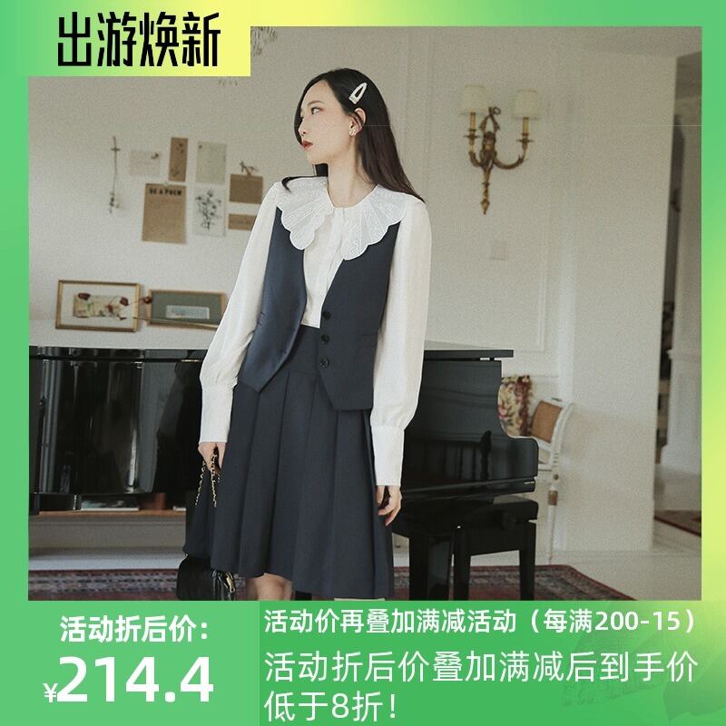 色:スポットに示されているベストネイビーブルー,スポットに見えるプリーツハーフスカートネイビーブルー,(ベスト+ハーフスカート)スポットに見えるネイビーブルーのスーツ
