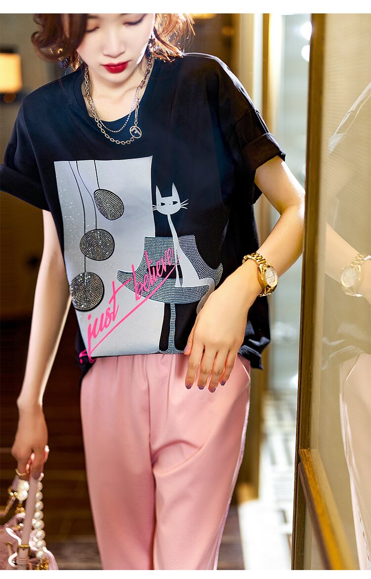 ≡ ラインストーンプリントTシャツ スプリングサマー半袖スリーブ薄手 ショート ハーフスリーブ 大きめサイズ 春物 夏物 ≡ アイドル ジャケット ブルゾン Tシャツ 長袖 半袖 デニム ジーンズ スーツ ZARA フォーエバー21 GAP H&M WEGO HONEYS MUJI GU UNIQLO dholic babyGAP FOREVER21 Old Navy 春夏秋冬 韓国 K-POP Kpop 韓流 スター AA291961152991