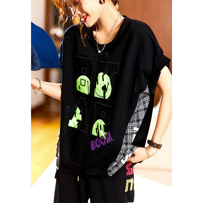≡ ブラックTシャツ ルーズサマートップス 大きめサイズ 夏物 ヨーロピアン ステッチ ≡ アイドル ジャケット ブルゾン Tシャツ 長袖 半袖 デニム ジーンズ スーツ ZARA フォーエバー21 GAP H&M WEGO HONEYS MUJI GU UNIQLO dholic babyGAP FOREVER21 Old Navy 春夏秋冬 韓国 K-POP Kpop 韓流 スター AA297599754617