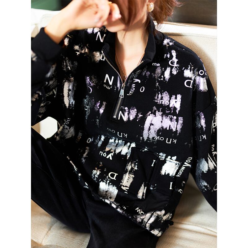 ≡ プリントベルベットセーター ルーズブラックトップス 大きめサイズ ヨーロピアン ≡ アイドル ジャケット ブルゾン Tシャツ 長袖 半袖 デニム ジーンズ スーツ ZARA フォーエバー21 GAP H&M WEGO HONEYS MUJI GU UNIQLO dholic babyGAP FOREVER21 Old Navy 春夏秋冬 韓国 K-POP Kpop 韓流 スター AA253988986202