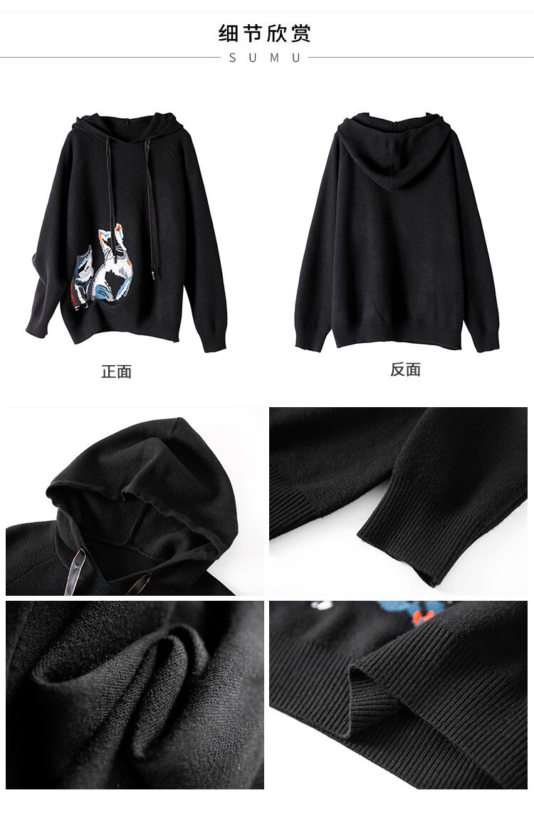 ≡ 刺繍フードセーター レディースオータムブラックトップス 秋物 ヨーロピアン ≡ アイドル ジャケット ブルゾン Tシャツ 長袖 半袖 デニム ジーンズ スーツ ZARA フォーエバー21 GAP H&M WEGO HONEYS MUJI GU UNIQLO dholic babyGAP FOREVER21 Old Navy 春夏秋冬 韓国 K-POP Kpop 韓流 スター AA296269684599